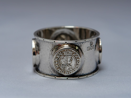 またこのナプキンリングはコインが4個嵌っており それぞれ、BC46ジュリアス・シーザーが南アフリカに行った時のコイン、1643年と1667年の Danish Krone、1787年の英国シリングです。