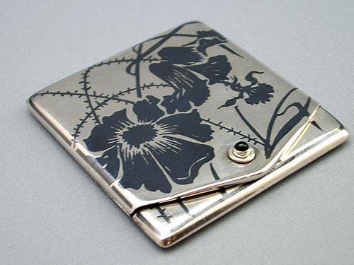 これもフランス19C末ジャポニズムのニエロのケースです。はじめは Calling Card Case と思っていたのですが、先日フランスアールヌーボーに非常に詳しいコレクターの方に、これはマッチ入れ(Vesta Case)と言われました。Vesta Case と違い、マッチをする場所がないと反論しましたが、昔のマッチはどこででも擦れるということで、Vesta Case の可能性が高いです。でもそんなこと関係なく、切手入れや家族の写真入れに使おうと思っています。
