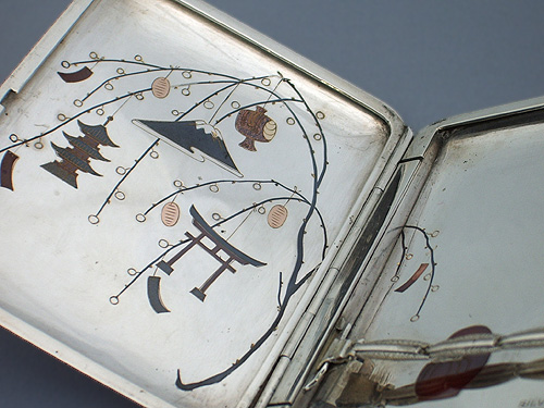 さてこのシガレットケースですが、その切り嵌め細工の中でもこれほど繊細で可愛い模様は見たことがありません。